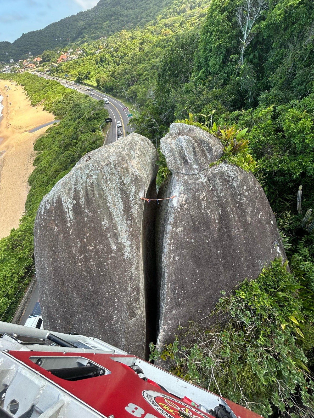 A Defesa Civil de Balneário Camboriú, junto com o Corpo de Bombeiros, instalou nesta quarta-feira (26) um equipamento de monitoramento na Pedra do Ovo, na Praia de Taquaras, na Avenida Rodesindo Pavan. A medida é preventiva, para acompanhar uma possível movimentação da rocha.