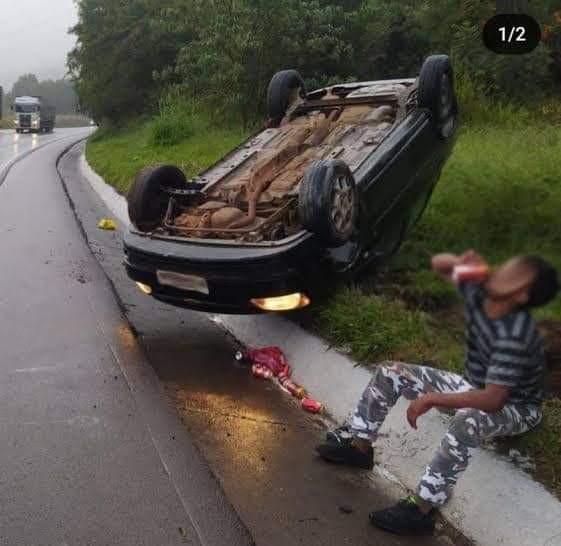 O condutor estava do lado de fora, sem lesões, tomando cerveja. Dentro do carro, foram encontradas diversas latas, algumas vazias.