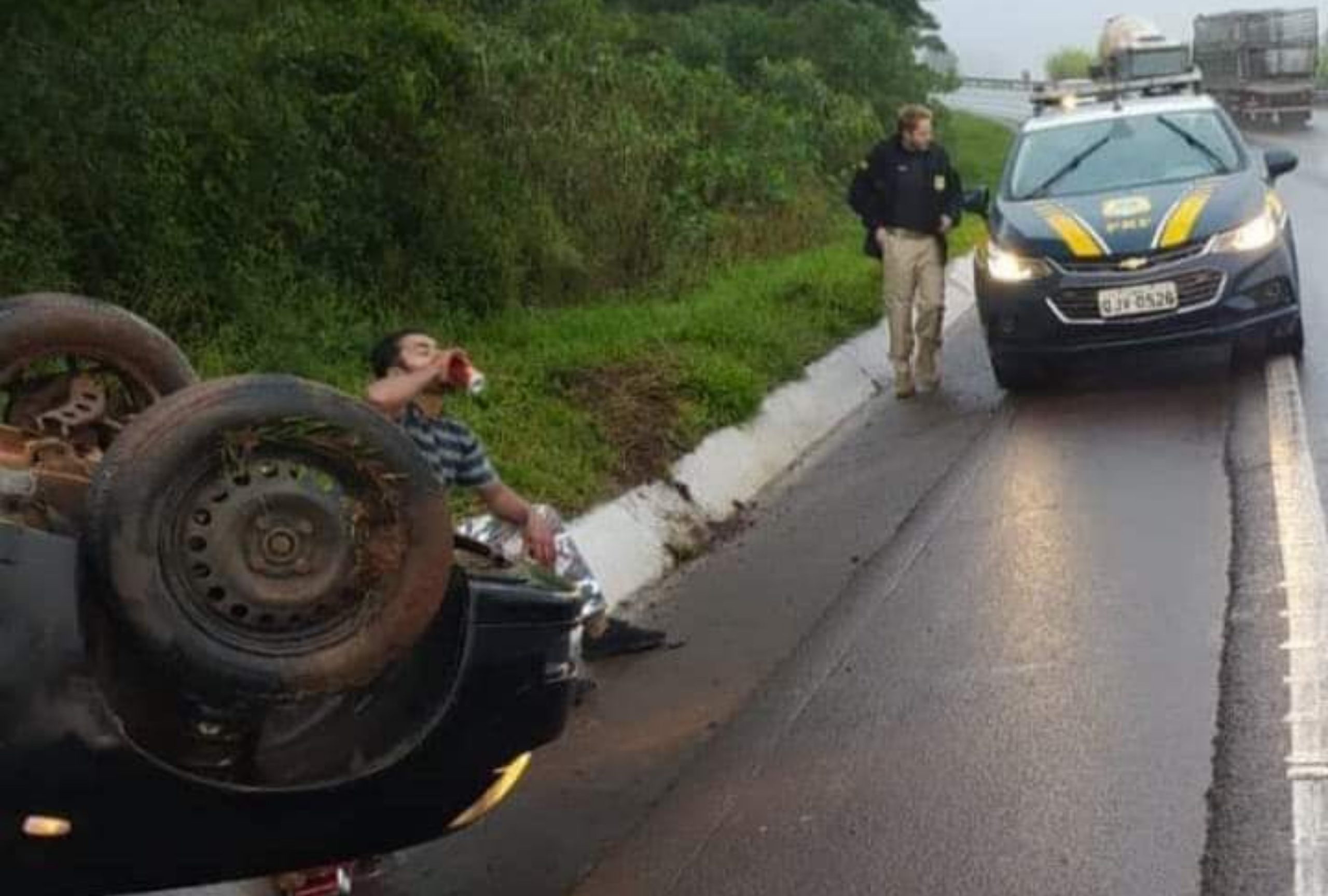 O motorista, de 29 anos, conduzia um Classic na manhã de ontem (16), na BR-282. Passou “voando” na frente dos Policiais Rodoviários. A Polícia saiu em perseguição ao veículo e encontrou o mesmo capotado.