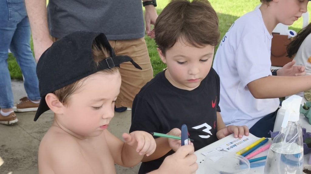 “Temos barraca com contação de histórias sobre o ciclo da água e palestras de educação ambiental.”.