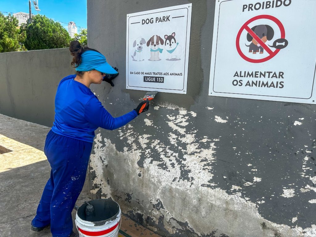 O espaço também receberá reposição de areia, o que contribui para o bem-estar dos animais e para a manutenção da higiene do ambiente. Além disso, a entrada do dog park passará por revitalização, com serviços de pintura e manutenção.