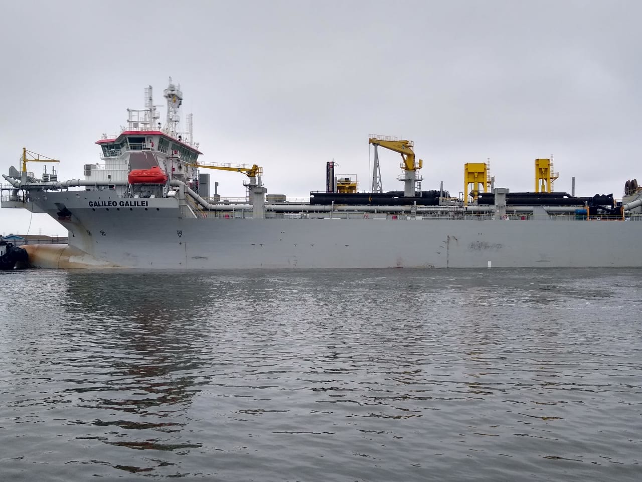 A draga Galileo Galilei que vai fazer o trabalho de trazer a areia nova para a recuperação da Praia Central de Balneário Camboriú chega a cidade neste domingo (22).