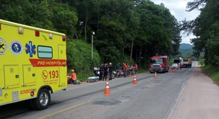 Duas motos se chocam e homem fica ferido na BR-470 entre Rodeio e Indaial