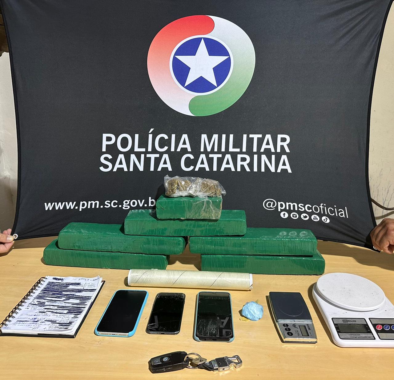 Em busca veicular, foi encontrado uma mochila preta contendo seis tabletes de maconha. Em diligências na residência do passageiro, foi localizado porções de maconha fracionada, uma porção de cocaína e demais petrechos típicos da atividade ilícita. Foi dada voz de prisão aos autores e conduzidos à Delegacia de Polícia Civil.