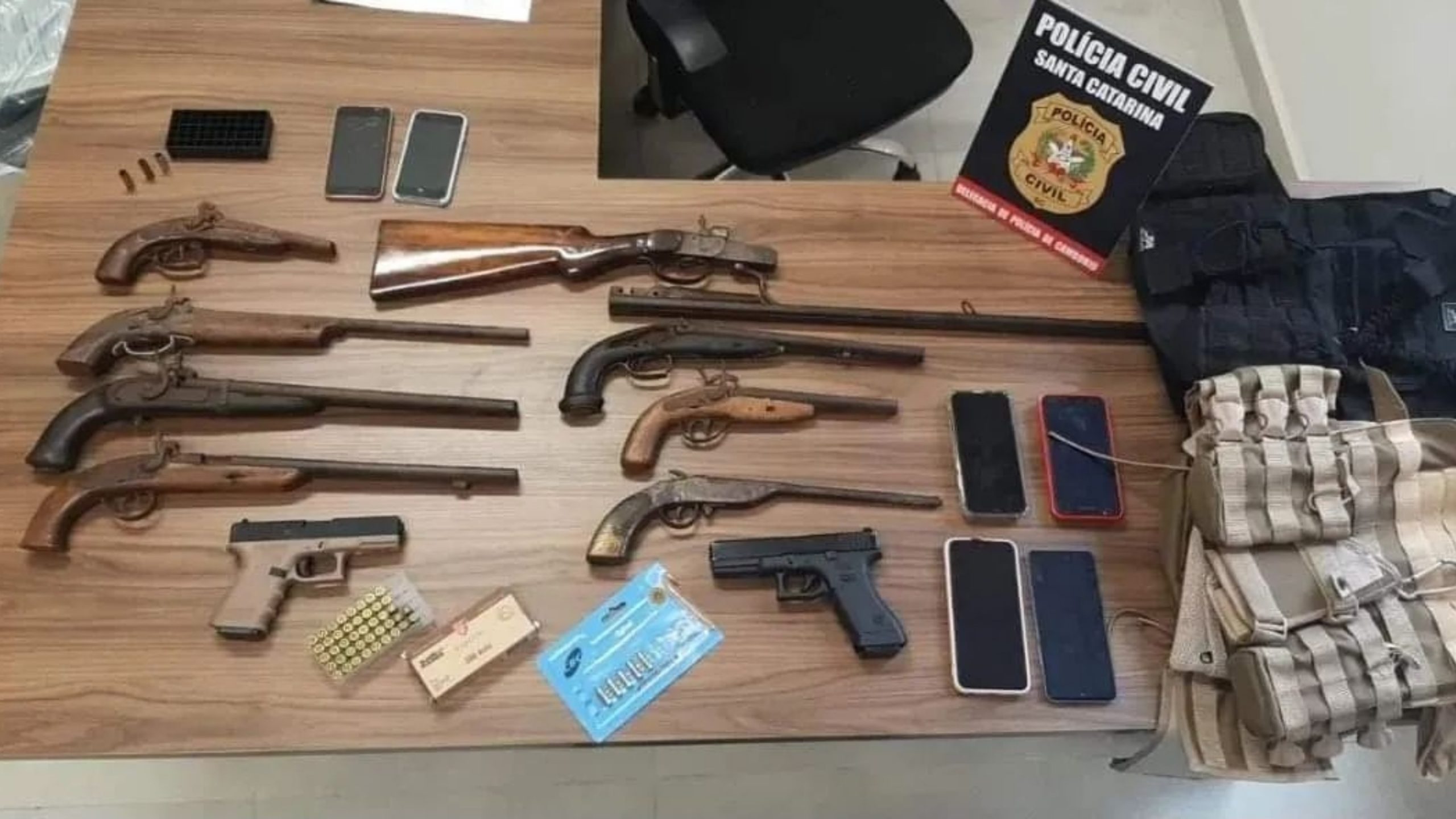 Esse segundo indivíduo, que morava no Bairro Santa Regina, também foi morto a tiros. Durante as buscas, na residência de um dos investigados, foram apreendidas cerca de oito armas de fogo, munição e simulácros.