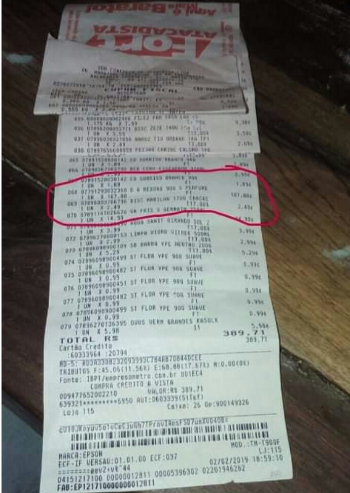 Ao conferir o cupom com a lista dos produtos comprados, E.A empresário de Camboriú percebeu que um desodorante Rexona que na gôndola custava R$ 8,99 reais, e ele tinha pegado R$ 107,88 reais.