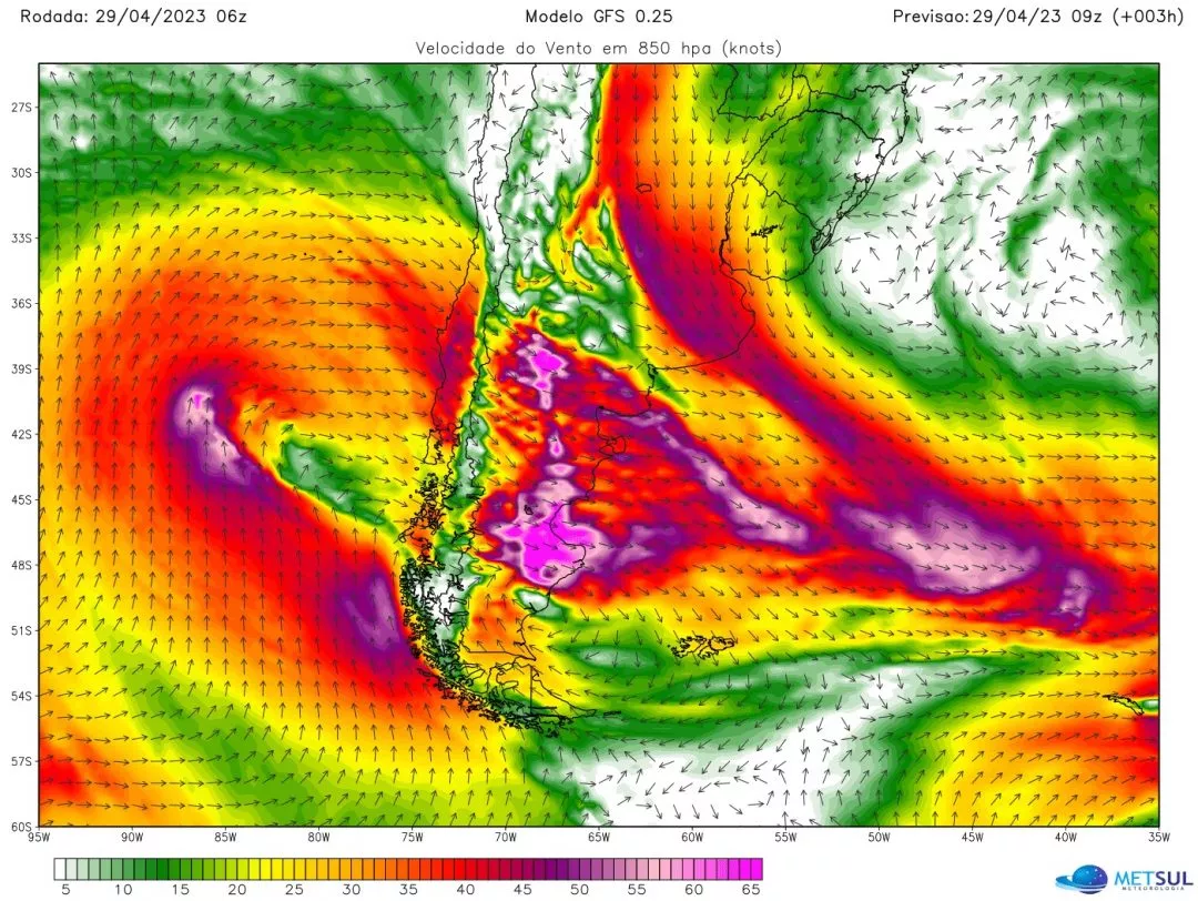 “Tanto a frente fria quanto o sistema de baixa pressão causarão condições de vento forte na Patagônia, nas montanhas e parte do centro do país em horários diferentes neste fim de semana”, destacou o serviço meteorológico argentino.