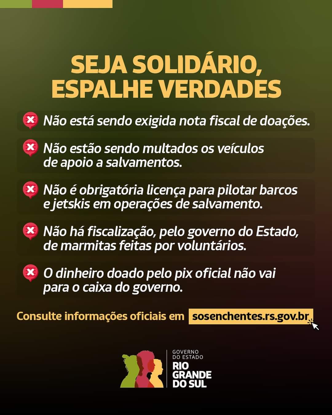 Juntos, podemos combater as fake news e contribuir para a segurança e bem-estar de todos. Vamos nos unir em prol da verdade e da solidariedade, mostrando que no Rio Grande do Sul, a informação correta é nossa maior aliada! 💪💙