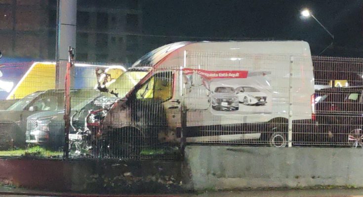 Na madrugada deste domingo, 5, um veículo Ford Transit ficou danificado em decorrência de um incêndio ter se iniciado após um morador de rua atear fogo em um colchão, na Marginal Leste, em Balneário Camboriú.