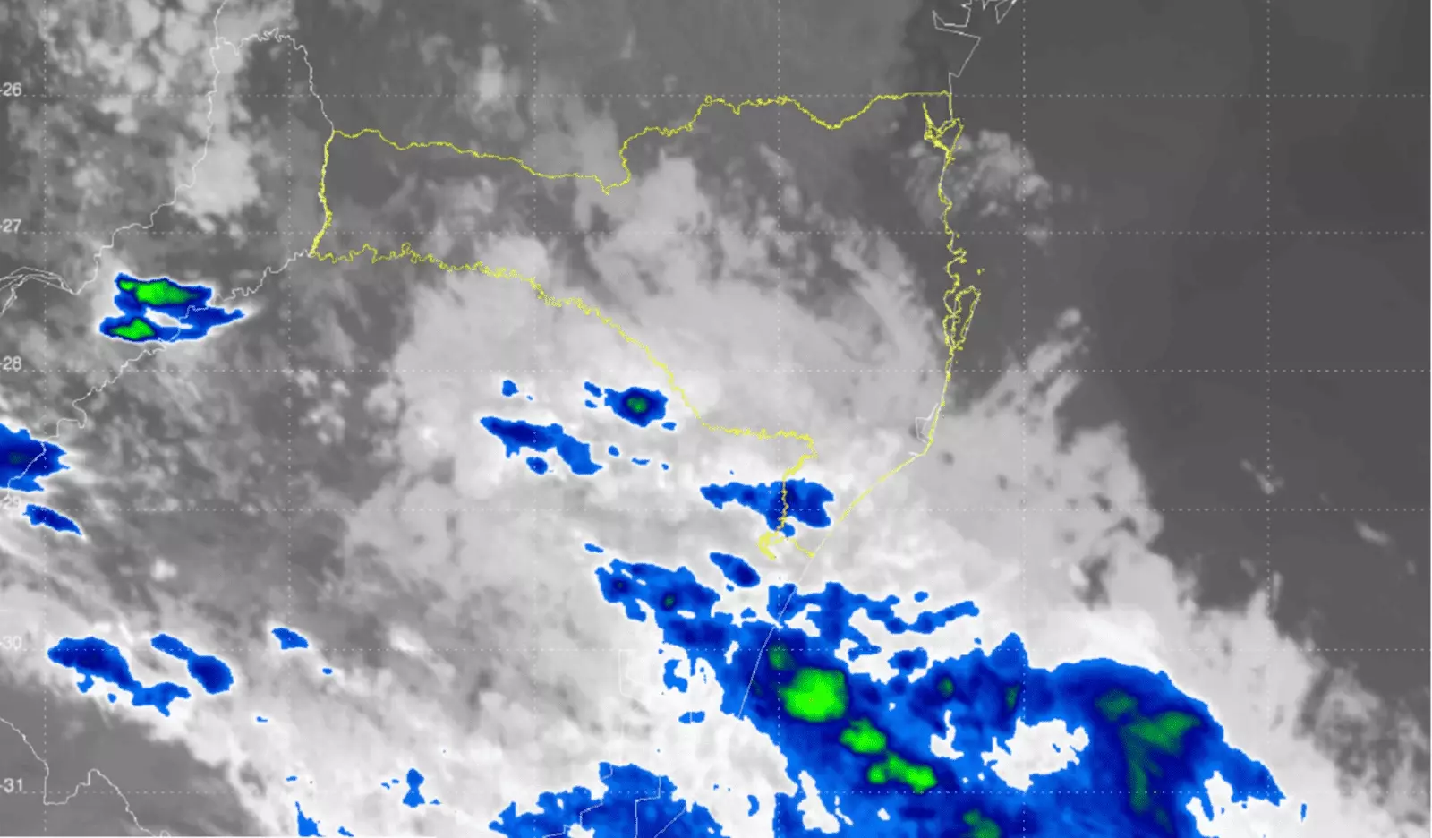 A chegada da chuva é resultado da influência de uma frente fria, que está avançando pelo Rio Grande do Sul e já começa a se aproximar de Santa Catarina.