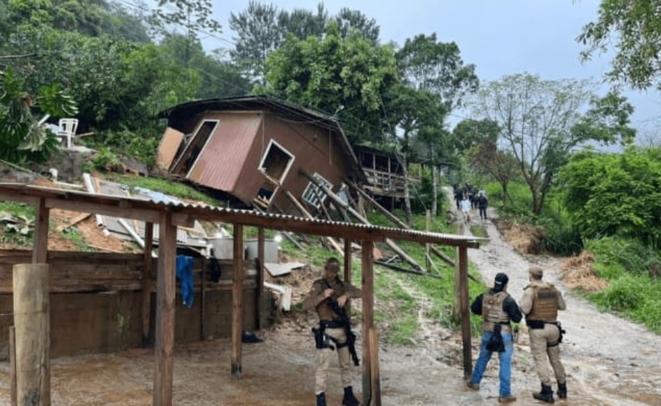 Deslizamento de terra termina com casa destruída e funcionário da Prefeitura de Balneário Camboriú, agredido.