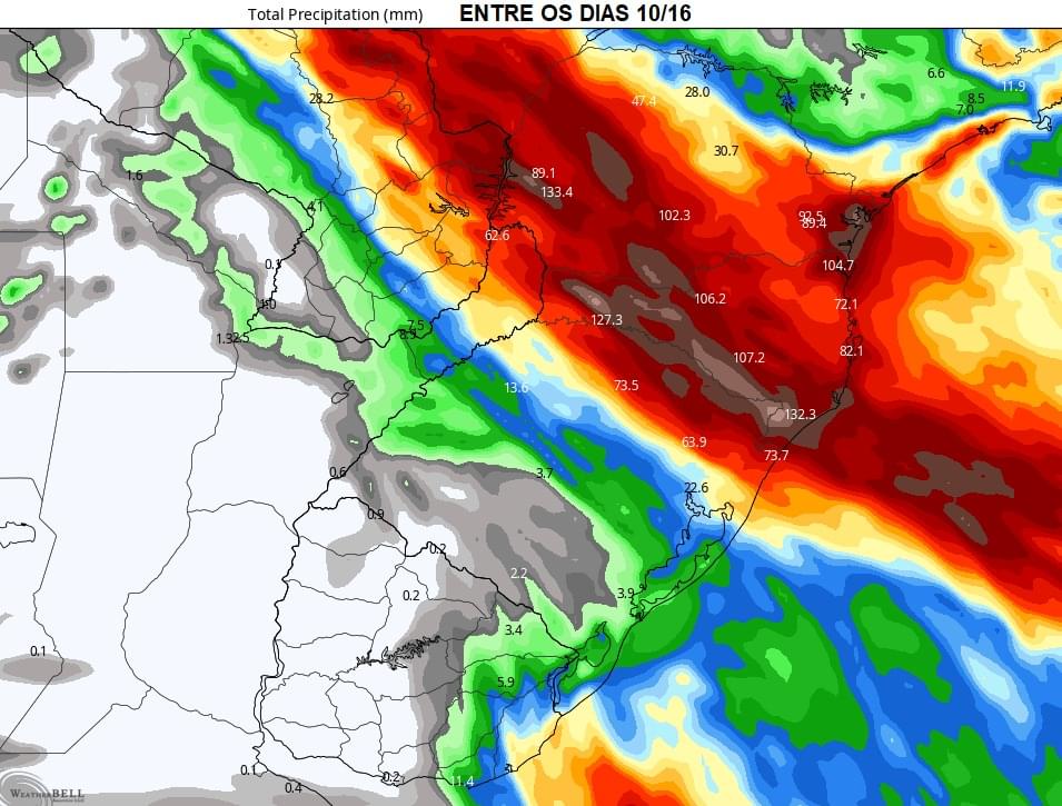 Passos Maia aparece em terceiro com 90.4 mm e, Tangará, no Meio-Oeste, 80.0 mm. Ponte Serrada aparece em 14° lugar, com 47.6 mm nas últimas 24 horas.