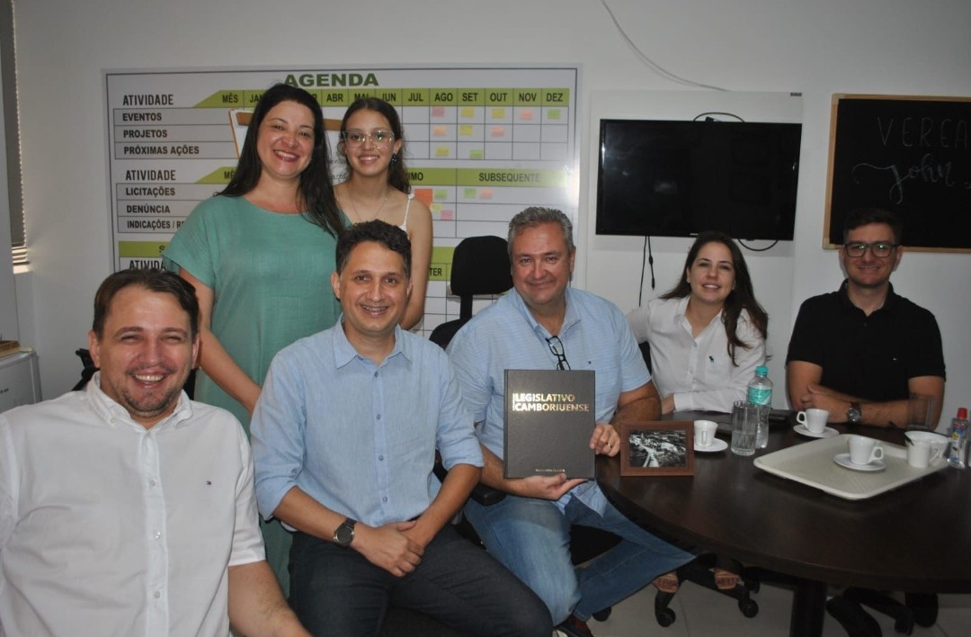 John Lenon, Ana Claudia e Julia recepcionando o grupo de Empresário no Gabinete da Câmara. Foto: Edenilson Pozzobon