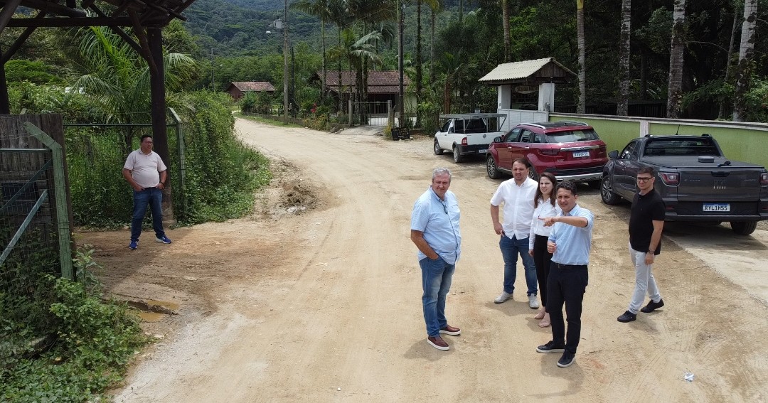 Vereador John Lenon apresentando área com o grupo de empresários no Interior de Camboriú. Foto Edenilson Pozzobon.