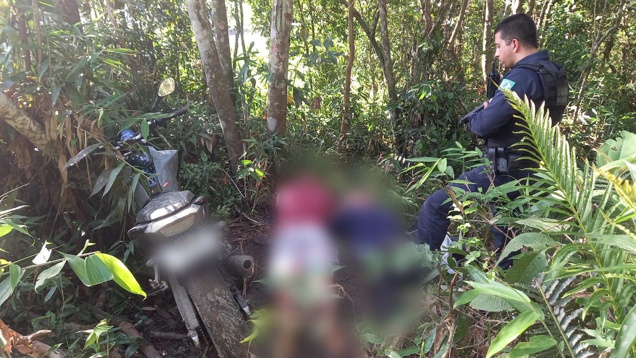 Feita a incursão em meio a mata fechada e de difícil acesso, a guarnição flagrou os dois indivíduos colocando gasolina em uma motocicleta Twister.