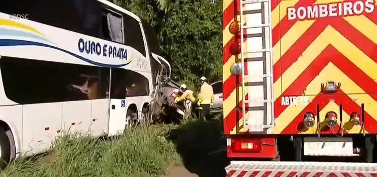 O condutor da Fiat Strada não resistiu aos ferimentos após batida frontal contra ônibus.
