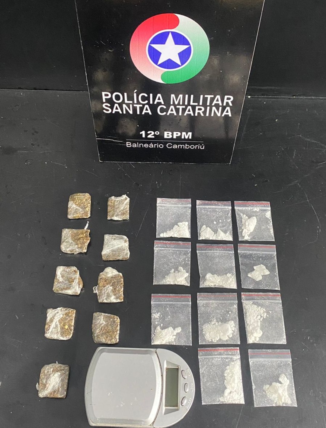 Um homem de 19 anos foi preso por tráfico de drogas na rua Monte Mercendario, no Bairro Conde Vila Verde, Zona Norte de Camboriú.