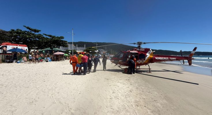 Bombinhas, 14/03/2026 – Um homem de 59 anos foi resgatado em estado grave após um afogamento na Praia de Bombas, na manhã de sábado (13). O incidente ocorreu por volta das 9h50, entre as ruas Corrupião e Coruja, e mobilizou uma operação integrada de salva-vidas, Bombeiros Militares e SAMU.