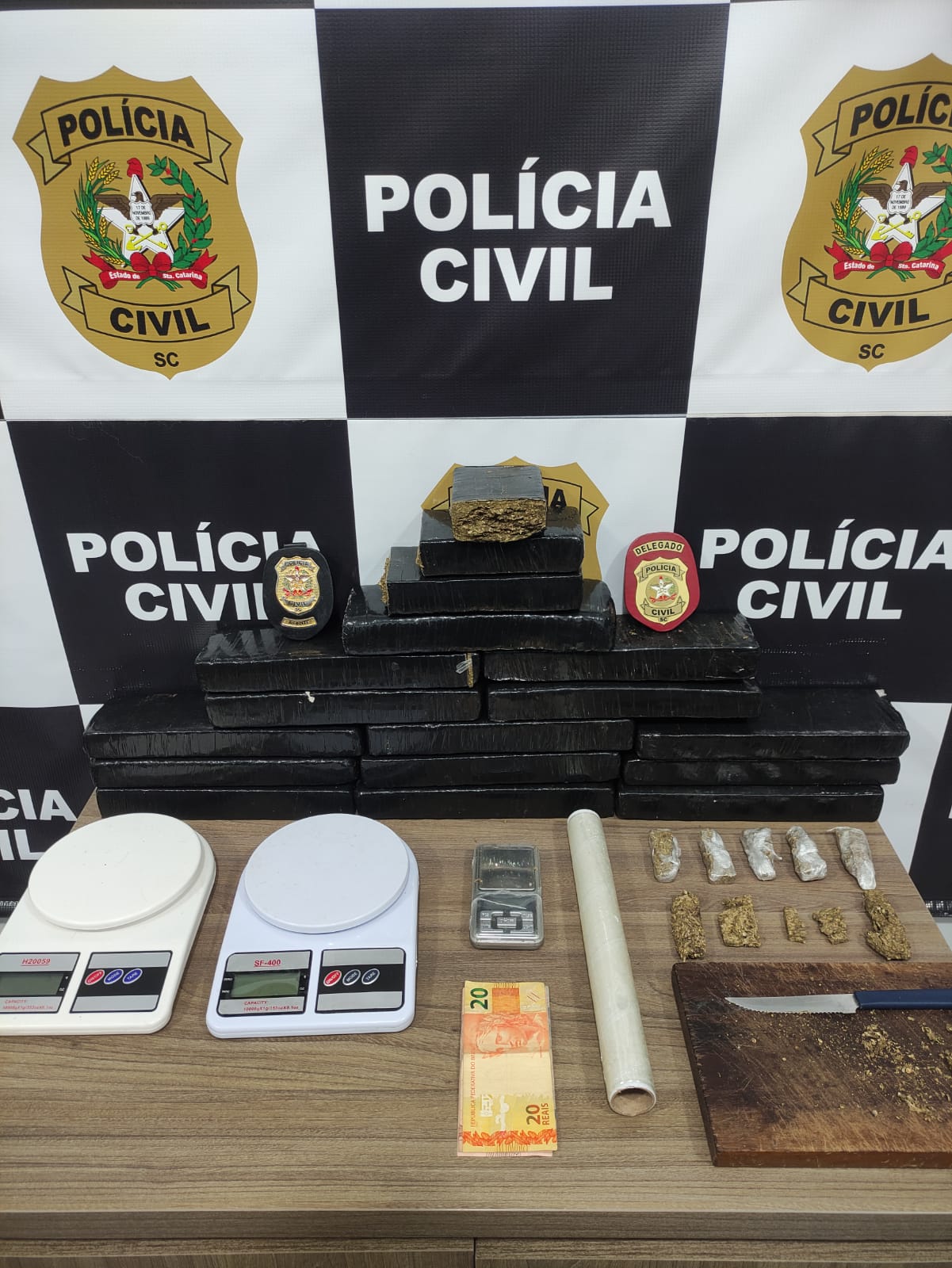 A Polícia Civil de Santa Catarina, através da Delegacia de Polícia Civil da Comarca de Ascurra, na data de hoje, 12 de julho de 2023, por volta das 15h00, localizou em uma residência na cidade de Ascurra, no bairro Tamanduá, aproximadamente 10 (dez) quilos de droga, entre maconha e cocaína.