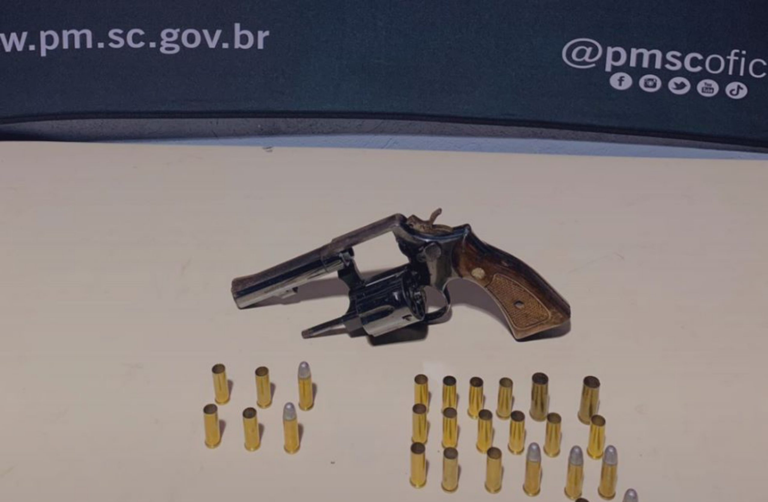 Em buscas pelo local, foram encontrados um revólver calibre .38, além de 06 (seis) munições intactas do mesmo calibre. Ao ser questionado, o abordado informou que havia mais munição na casa, sendo localizadas mais 18 (dezoito) capsulas deflagradas de calibre .38 e 02 (duas) cápsulas deflagradas de calibre 44.