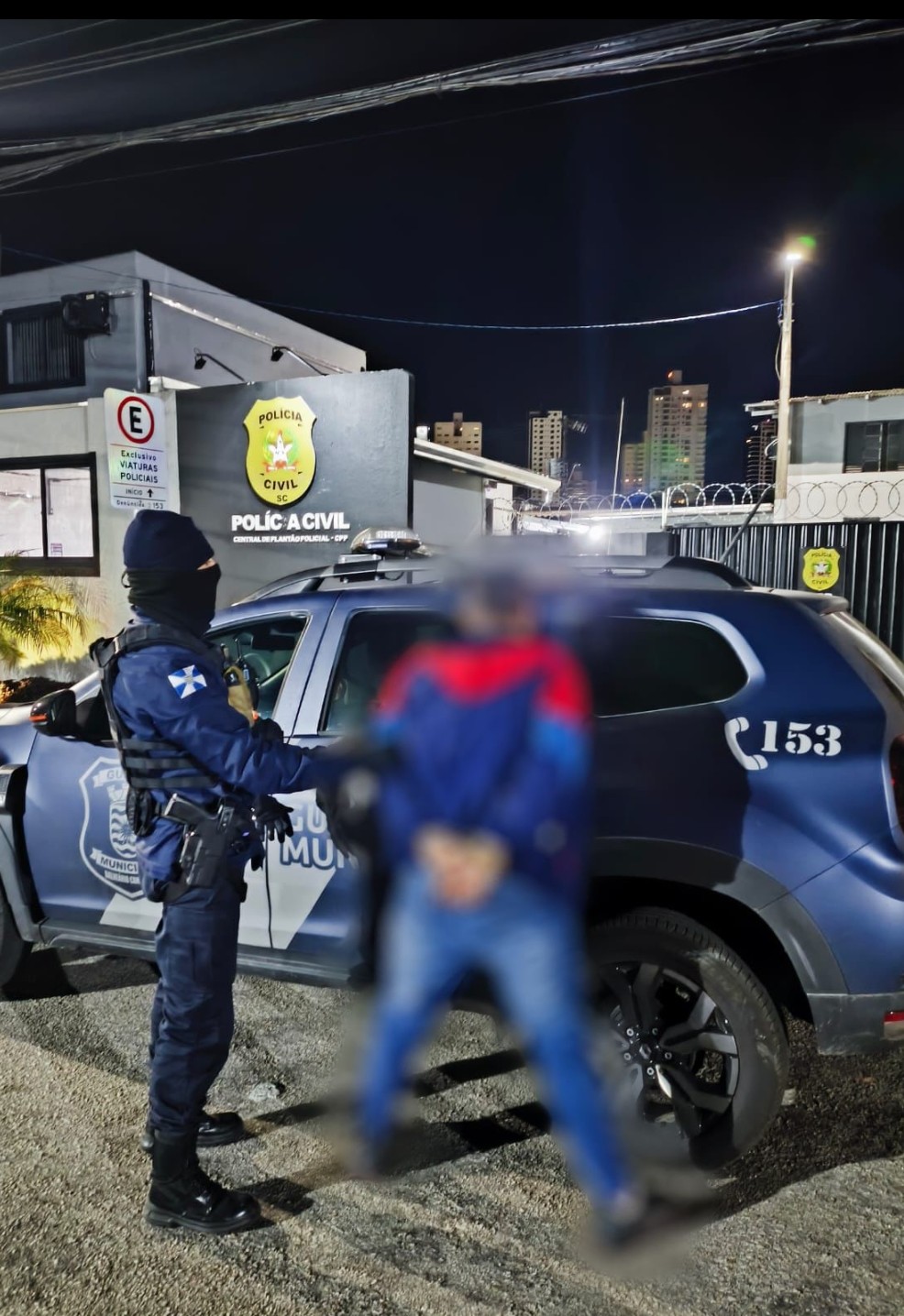 A guarnição, ao receber a informação, rapidamente localizou o veículo na mesma avenida, próximo à esquina com a Rua Itália. Durante a abordagem, encontraram a vítima chorando, deitada no banco traseiro do carro, apresentando sangramento em um dos ouvidos e dores nas costelas. O motorista do veículo era amigo do casal, enquanto o agressor estava no banco do passageiro.