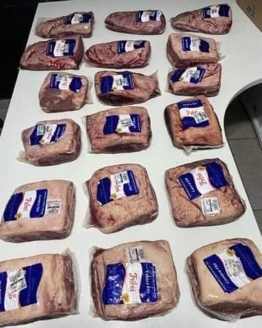 Já na área externa meliante foi abordado e quando foi realizada a abertura da caixa de papelão verificou-se que haviam 18 peças de carne à vácuo, que juntas somam a quantia de 1.337,07 reais.