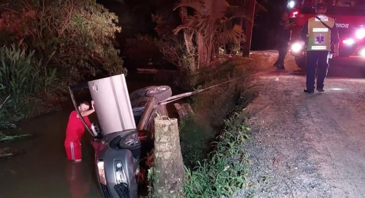 Um homem morreu após capotar com o carro dentro de um ribeirão no bairro Vila Itoupava, em Blumenau, na madrugada do domingo, 5. O acidente aconteceu na Artur Hertel por volta das 2h30.