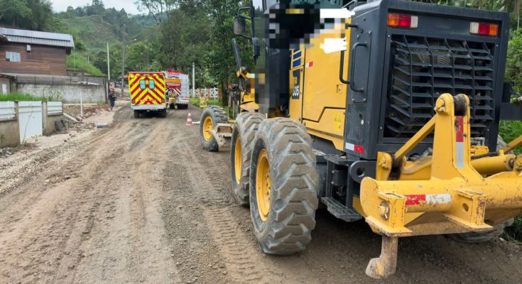 Um homem morreu atropelado por uma patrola no Ribeirão Carvalho, no Apiúna, Santa Catarina, nesta quarta-feira (1).