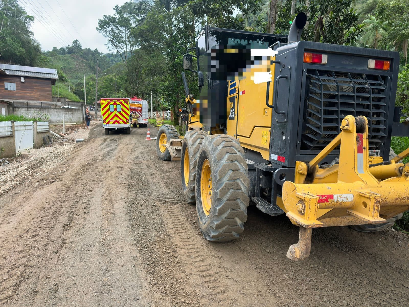 Um homem morreu atropelado por uma patrola no Ribeirão Carvalho, no Apiúna, Santa Catarina, nesta quarta-feira (1).
