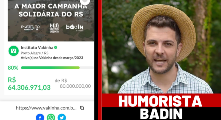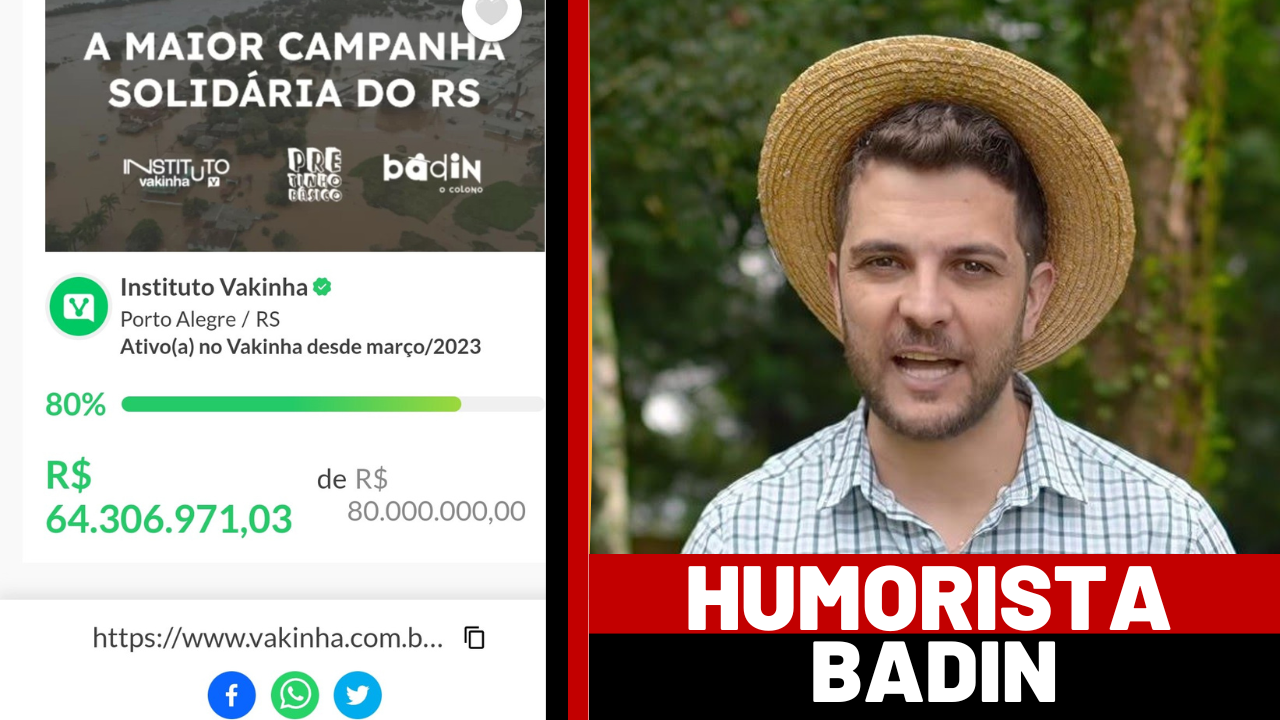 As fortes chuvas que castigaram 80% das cidades do estado resultaram em um número significativo de desabrigados e desalojados. Diante desta crise, muitos influenciadores digitais brasileiros se prontificaram a usar suas plataformas para captação de recursos e auxílio às vítimas. Entre eles, Badin se destacou ao promover uma das mais eficazes campanhas de arrecadação para as enchentes, conseguindo angariar impressionantes R$ 64 milhões até o momento.