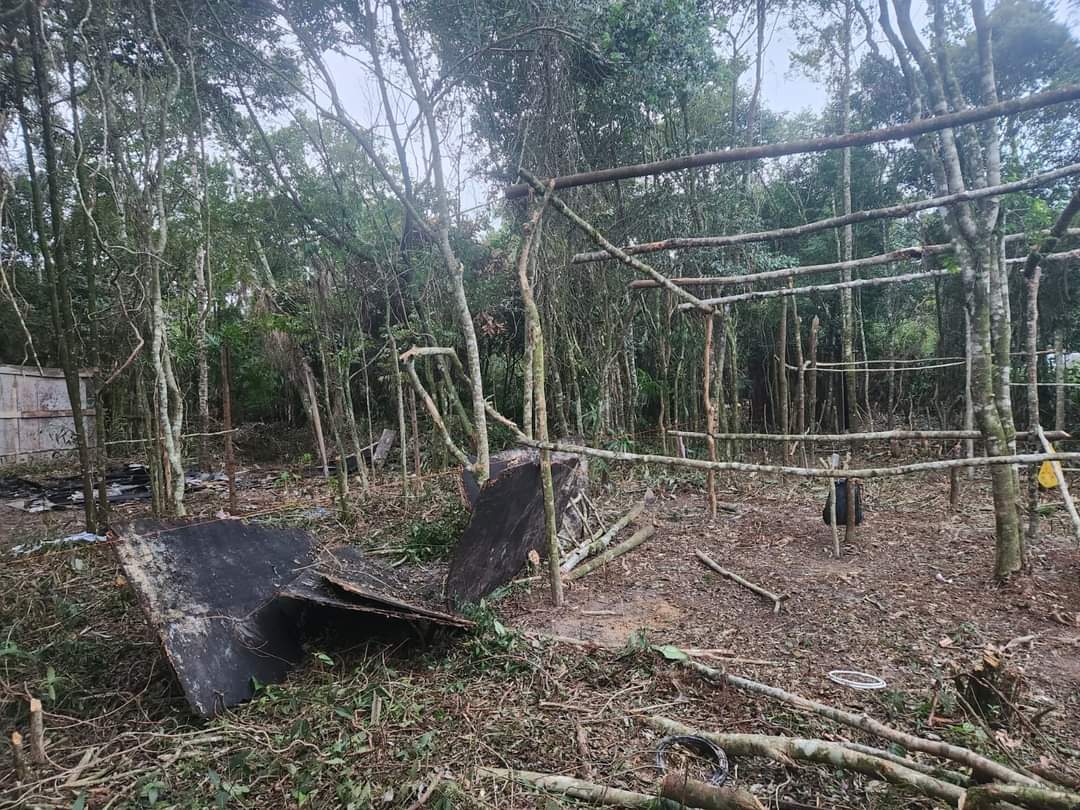 No local, foram identificados vários pontos de área verde desmatada, bem como vários casebres, alguns deles construído com a própria madeira retirada da mata em construção e algumas já com moradores.