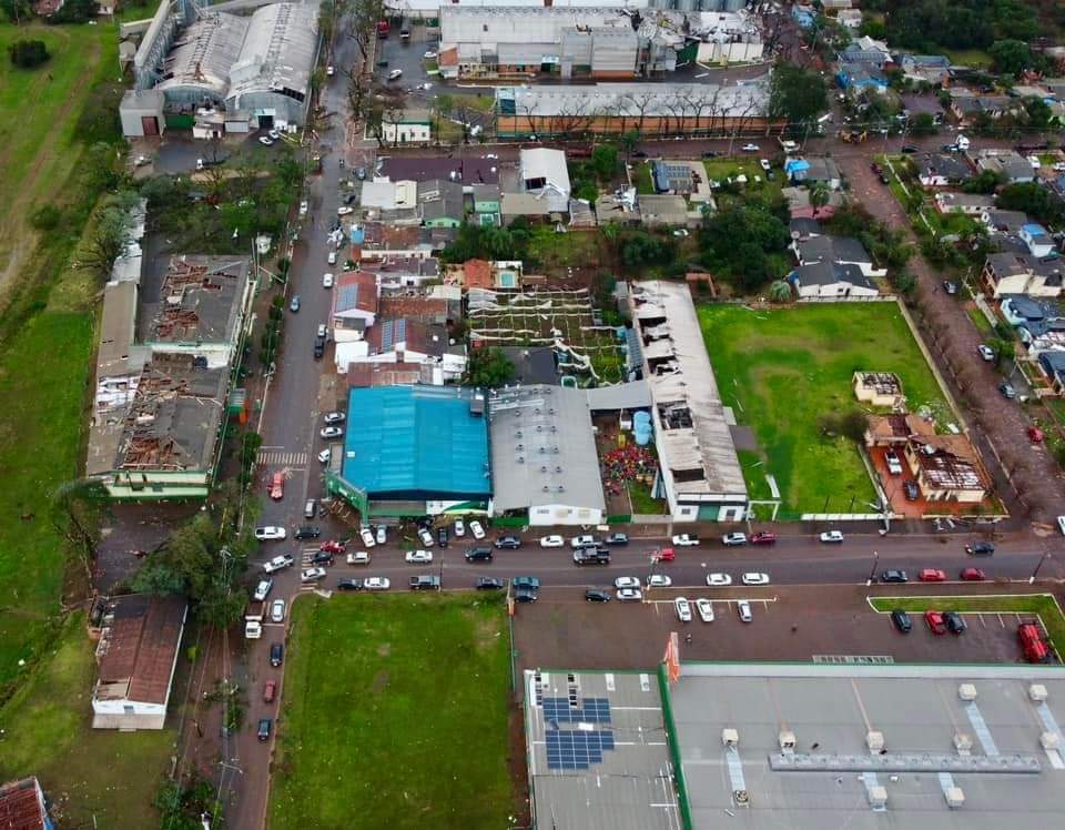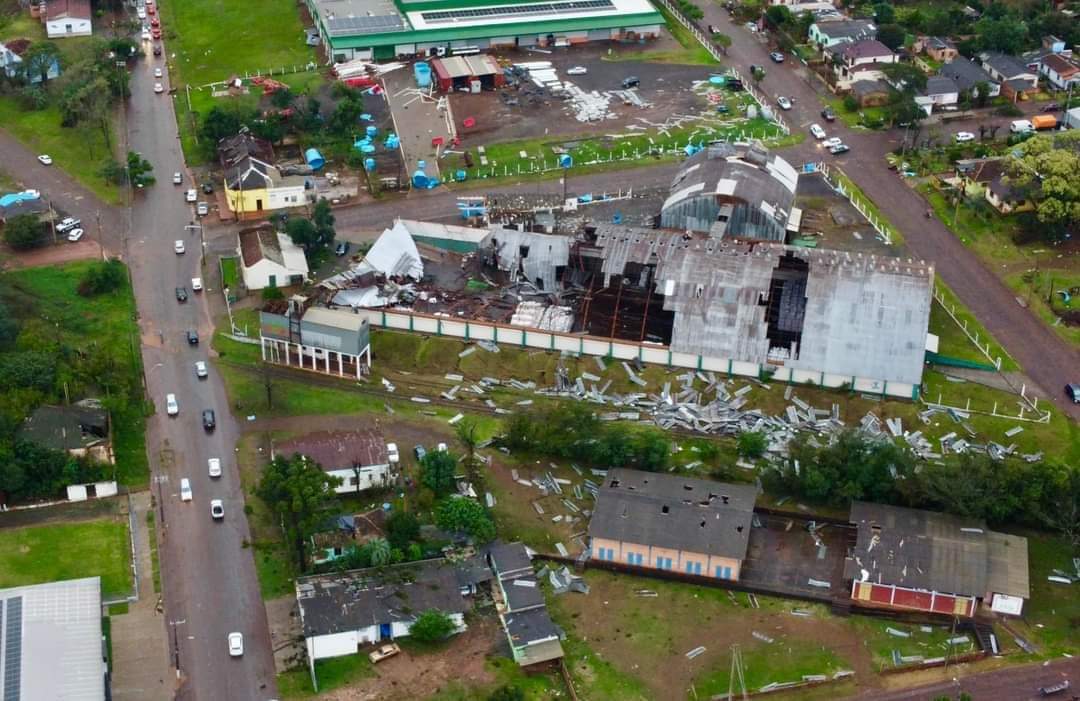 As imagens aéreas exclusivas produzidas na manhã deste domingo, pelo nosso parceiro Gelson Bender, mostram um cenário de devastação. Parte da cidade ainda está sem energia elétrica.