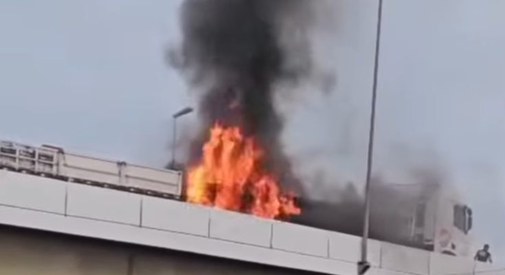 Incêndio em carreta causa trânsito caótico na BR-101 em Itajaí