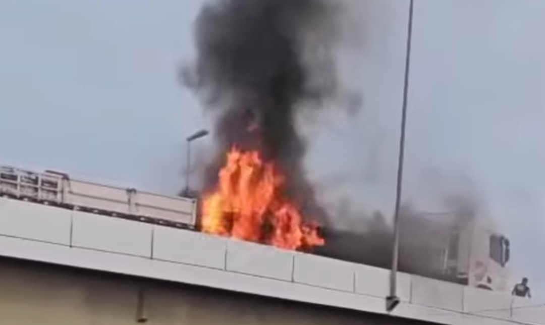 Incêndio em carreta causa trânsito caótico na BR-101 em Itajaí