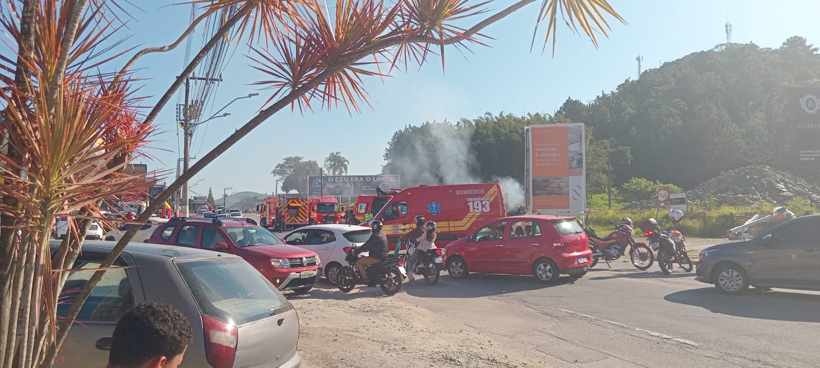 Devido ao incêndio, o trânsito na Av. Santa Catarina precisou ser obstruído para facilitar o trabalho dos bombeiros. “Desvio’. A equipe precisou atuar rapidamente para evitar que as chamas se alastrassem e causassem danos maiores ao local.