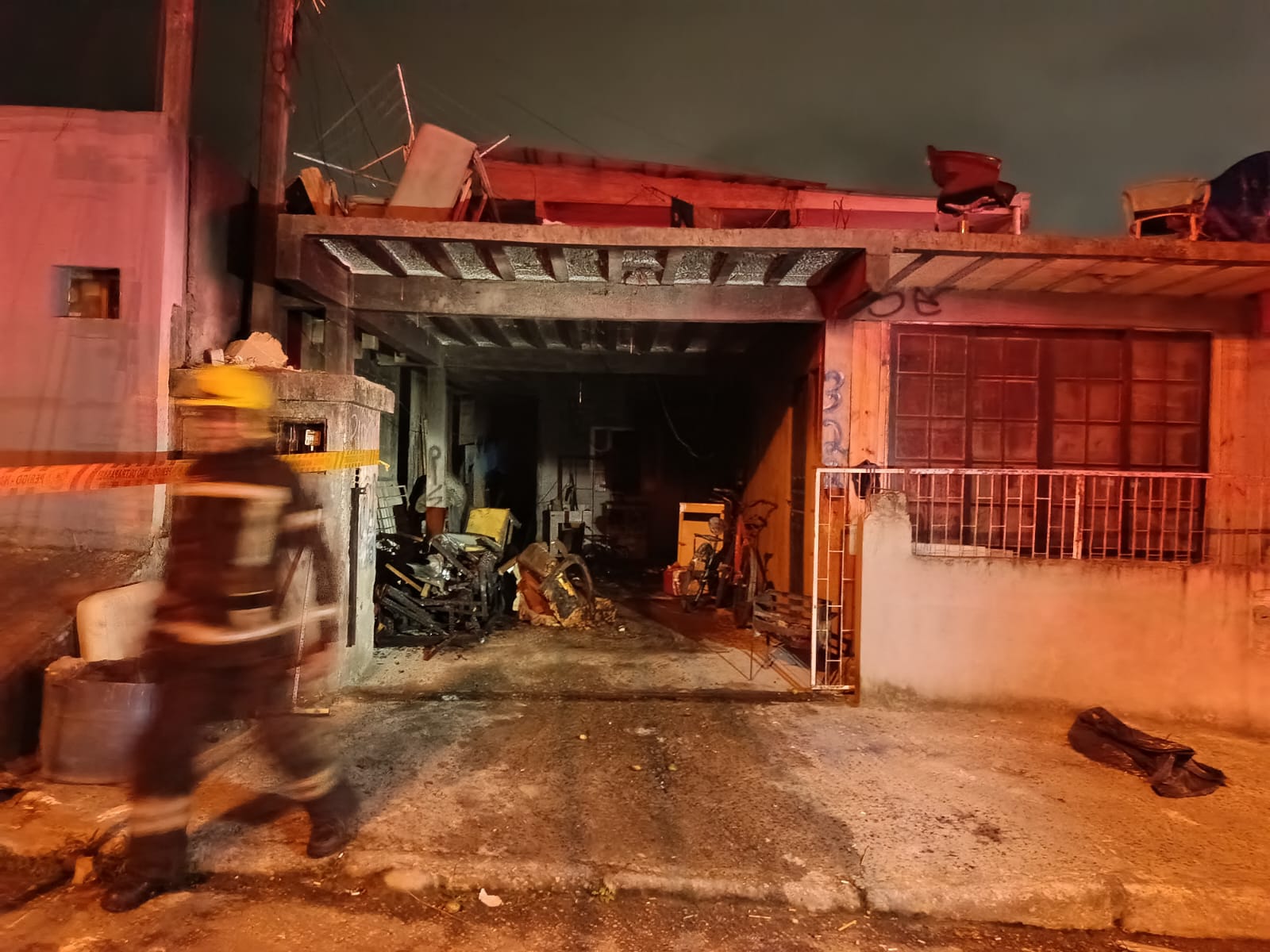 O incêndio causou danos parciais na garagem, comprometendo a camada de isopor da laje e parte da fiação elétrica.