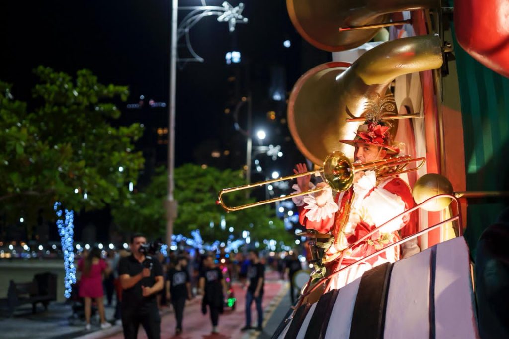 Mais uma vez, o tradicional desfile de Natal, realizado na noite deste sábado (13) em toda a extensão da Avenida Atlântica, levou magia e emoção a moradores e visitantes de Balneário Camboriú. O espetáculo “Minha Noite de Natal”, que faz parte da programação do Viva o Natal BC 2025, conta com a participação de 50 artistas e cinco carros alegóricos, que percorrem a orla da Praia Central – da Barra Sul ao Pontal Norte – embalados pelo jingle oficial “Viva o Natal BC”.