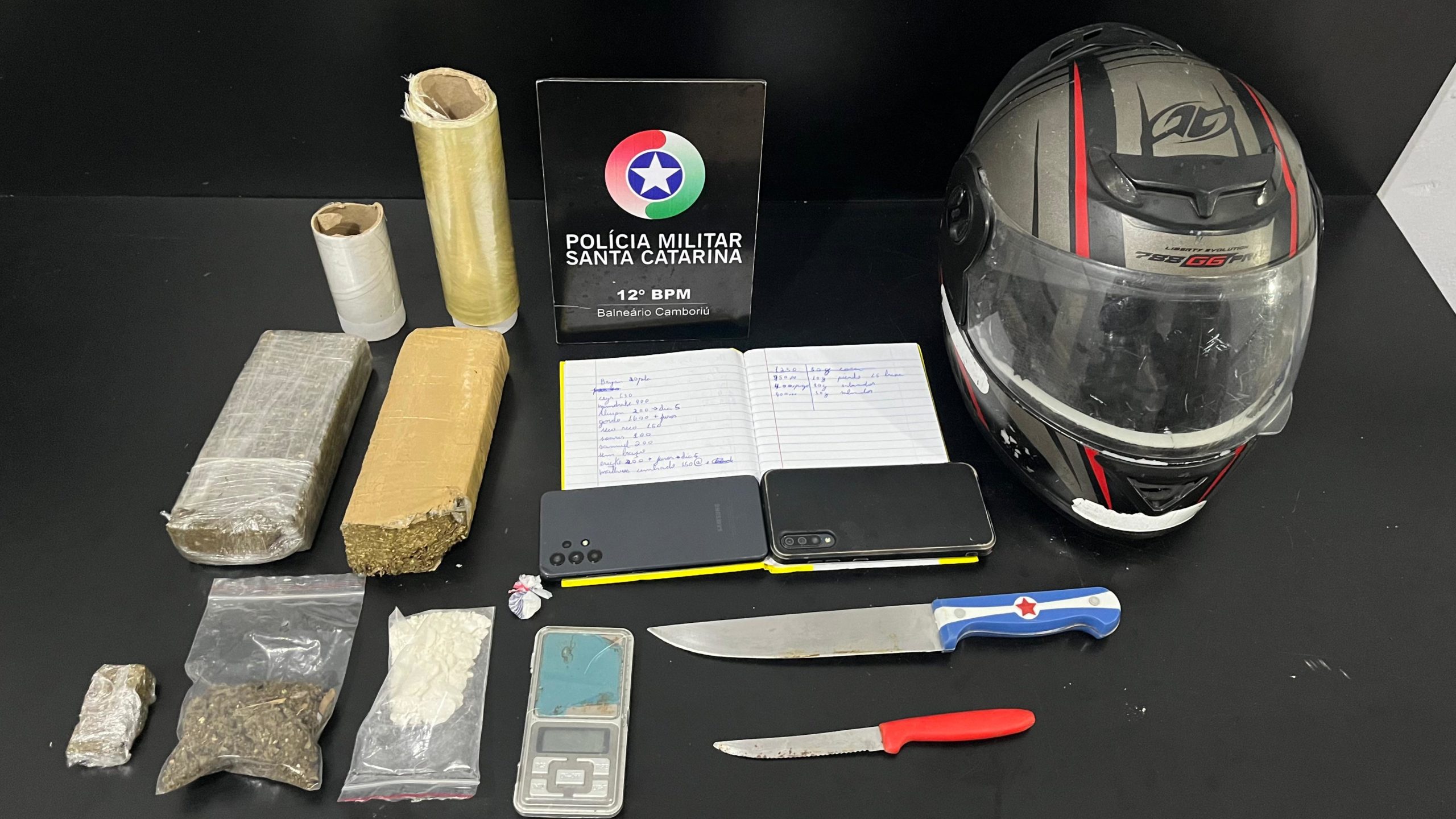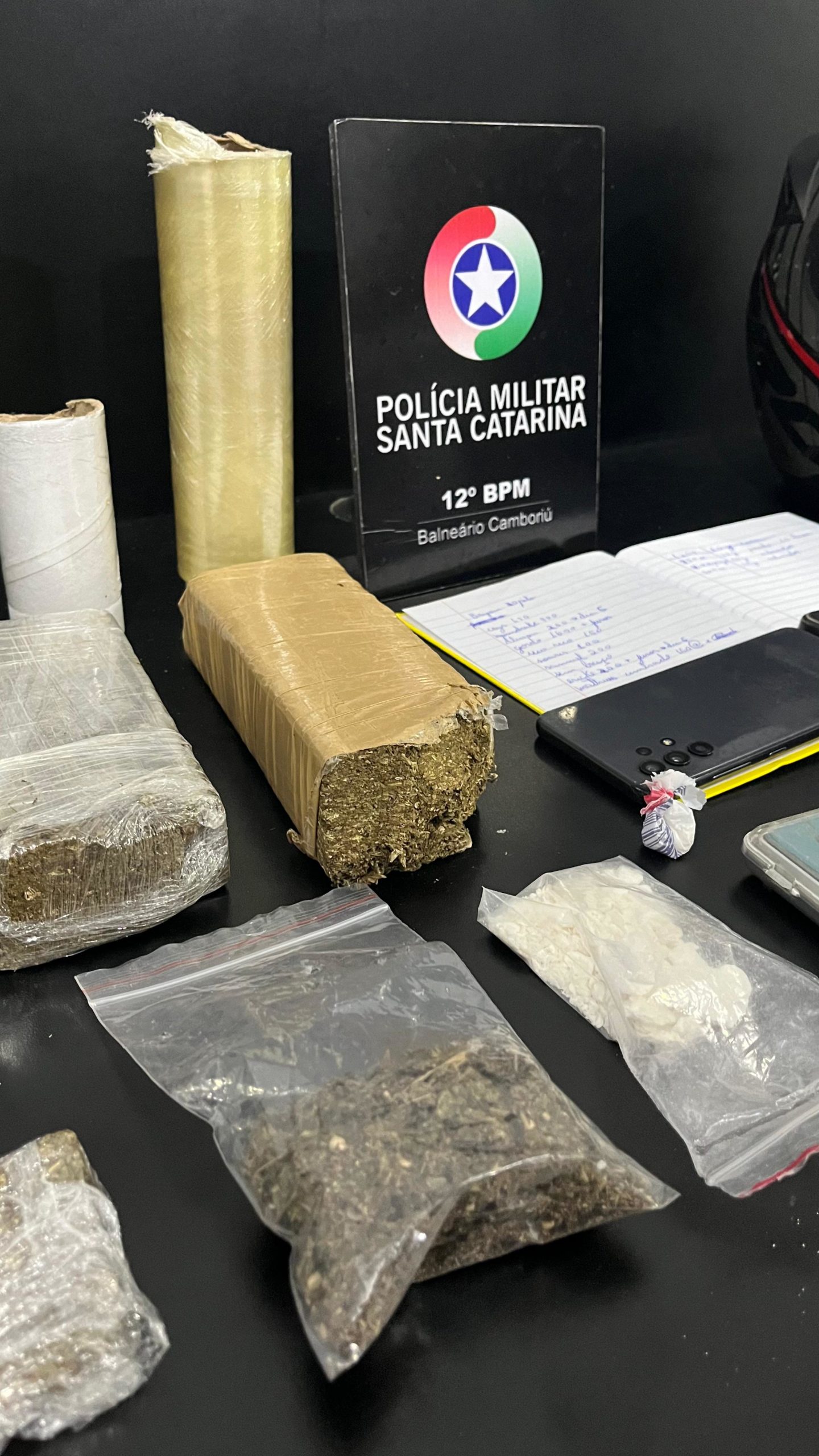 A PM atendeu uma ocorrência de tráfico de drogas, nas ruas Maria Joaquina Corrêa, no bairro da Barra, e também na rua Mauritânia, das Nações, em Balneário Camboriú.