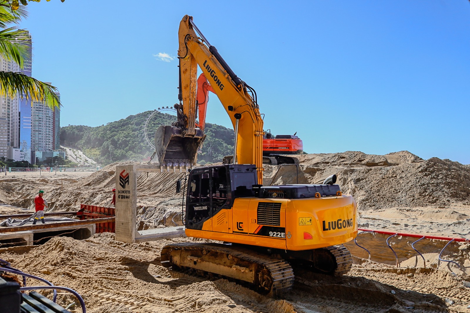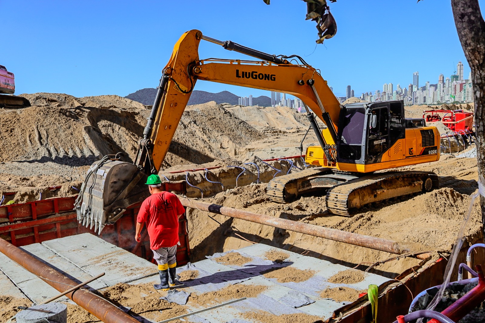 A maior obra de macrodrenagem do Brasil avança, com mais de 450 metros de aduelas já assentadas até a sexta-feira (30) na areia da Praia Central. Nesta semana, mais unidades chegaram para compor a galeria, que terá 2,4 km de extensão ligando a Rua 2000 ao Canal do Marambaia na etapa Norte.