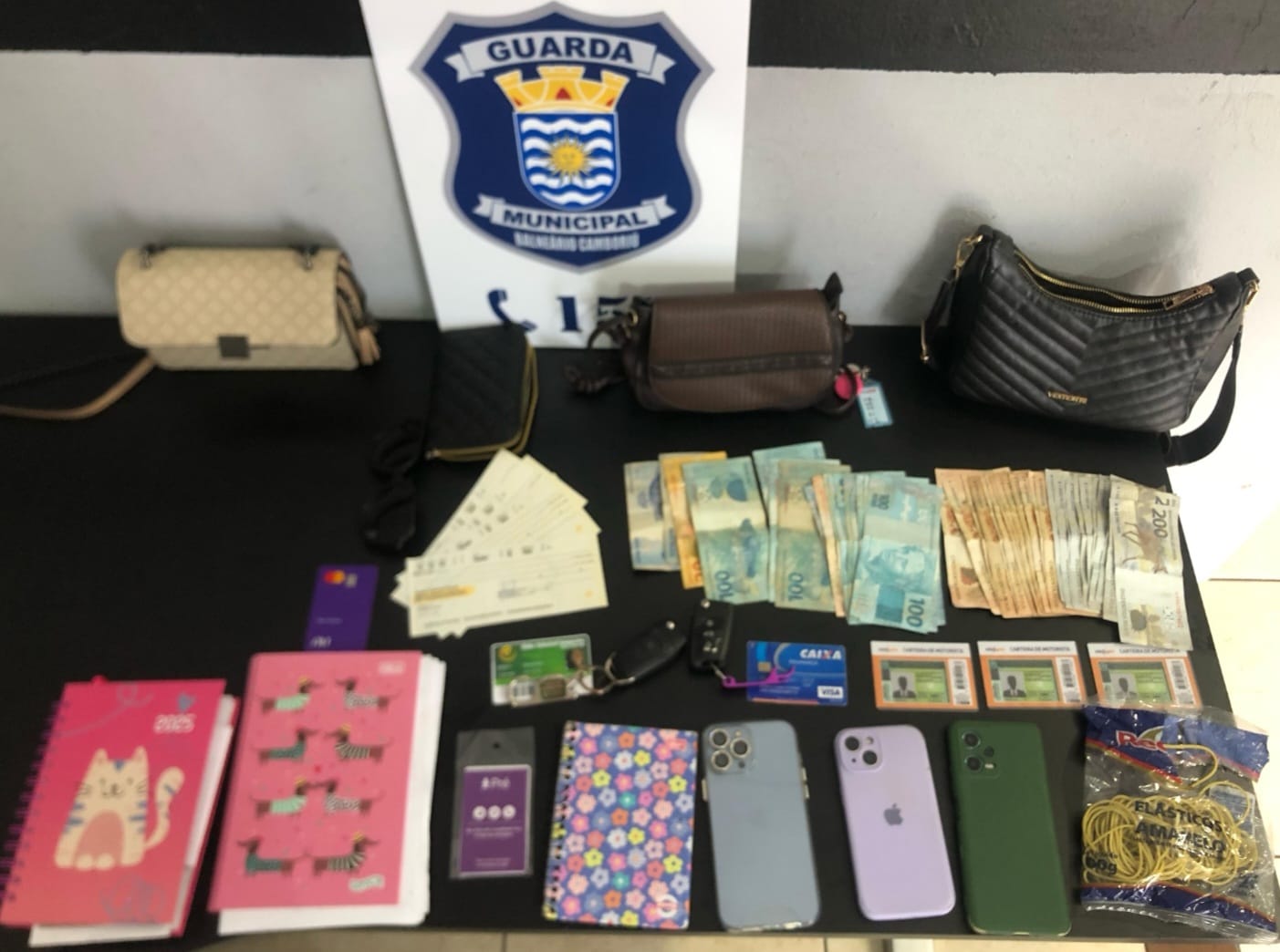 Em rondas, os guardas municipais lograram êxito em localizar os automóveis estacionados ao lado do Banco do Brasil. Foram abordadas duas mulheres, de 37 e 25 anos, e um homem, de 26. Com eles, foram encontradas três bolsas, contendo R$ 424,00 em uma, R$ 3.300 em outra e R$ 952,00 na terceira, totalizando R$ 4.676,00 em espécie, além de quatro folhas de cheque assinadas em branco, e cadernetas com anotações de possíveis golpes aplicados.