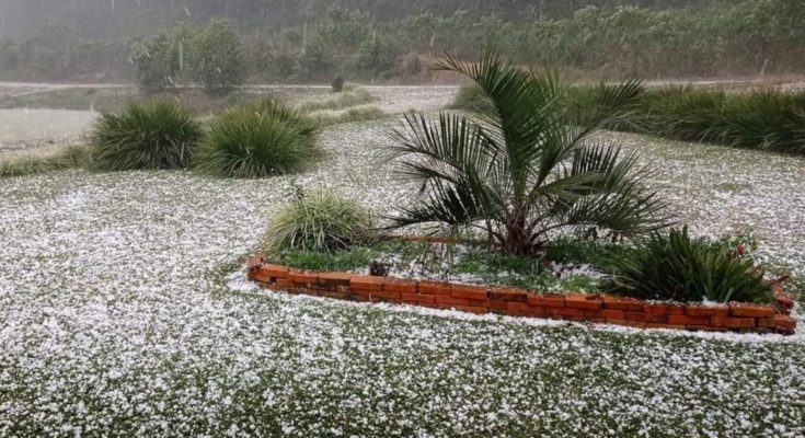 Várias cidades de Santa Catarina registraram queda de granizo nesta terça-feira (21).