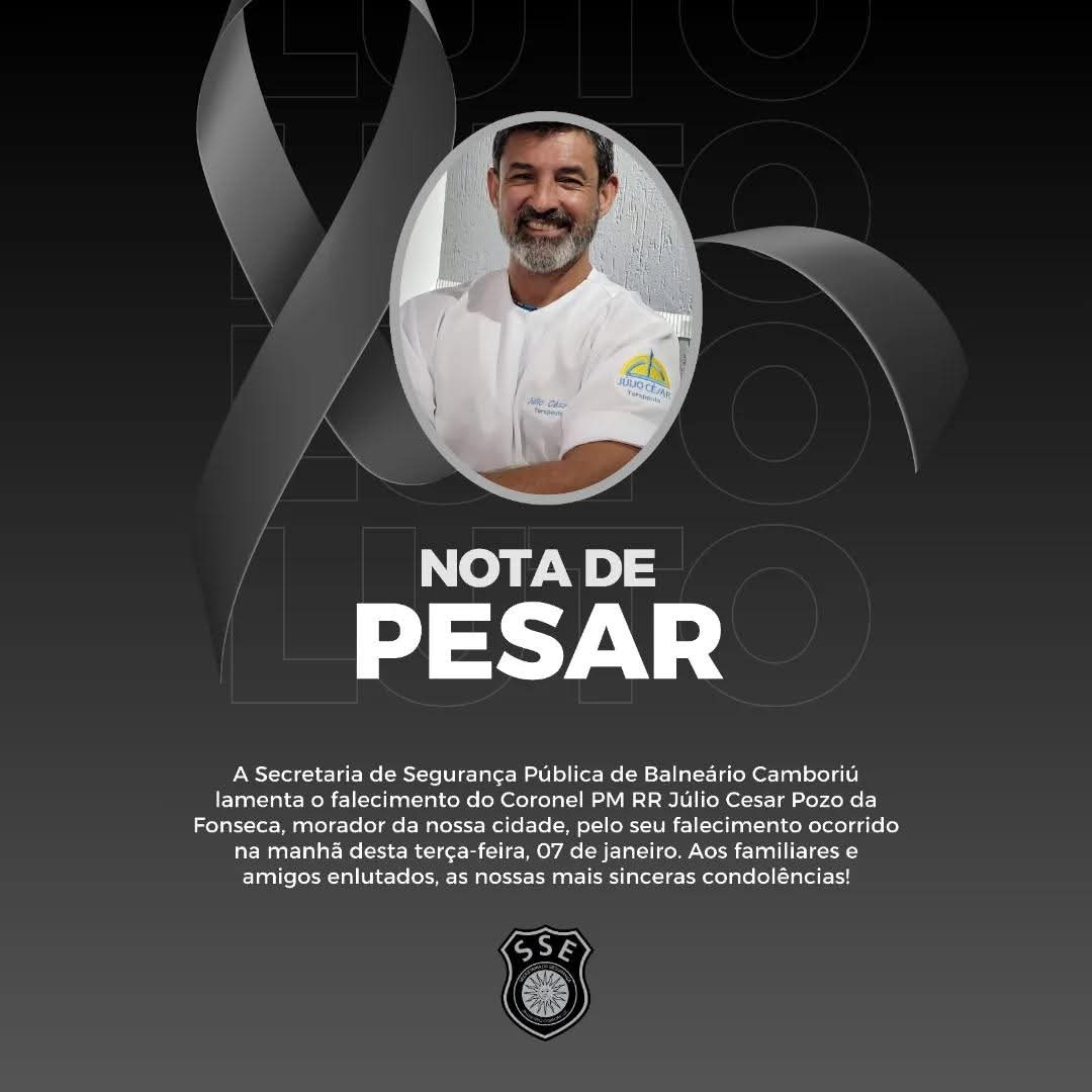 A Secretaria de Segurança Pública de Balneário Camboriú lamenta profundamente o falecimento do Coronel PM RR Júlio Cesar Pozo da Fonseca, nessa terça 7 de janeiro.