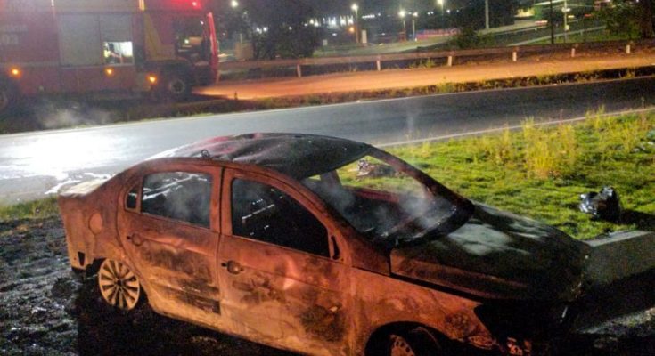 Na noite da última terça-feira, 02, o Corpo de Bombeiros Militar de Navegantes foi acionado para atender uma ocorrência de incêndio em veículo no bairro Volta Grande, na alça de acesso da BR-470 para a BR-101 sentido norte.