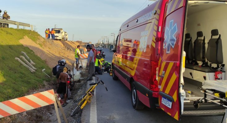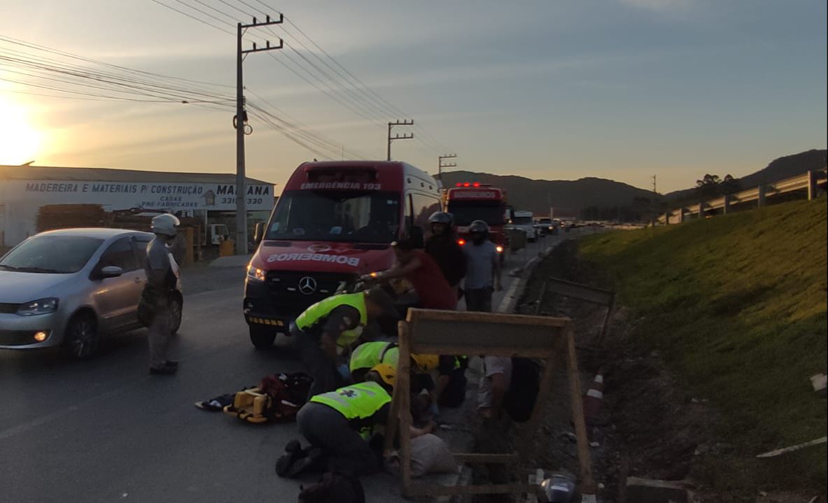 O Corpo de Bombeiros Militar de Navegantes foi acionado nesta tarde de terça-feira, por volta das 17h30min, para atender uma ocorrência de acidente de trânsito envolvendo uma motoqueiro e um ciclista na BR-470, bairro Machados.