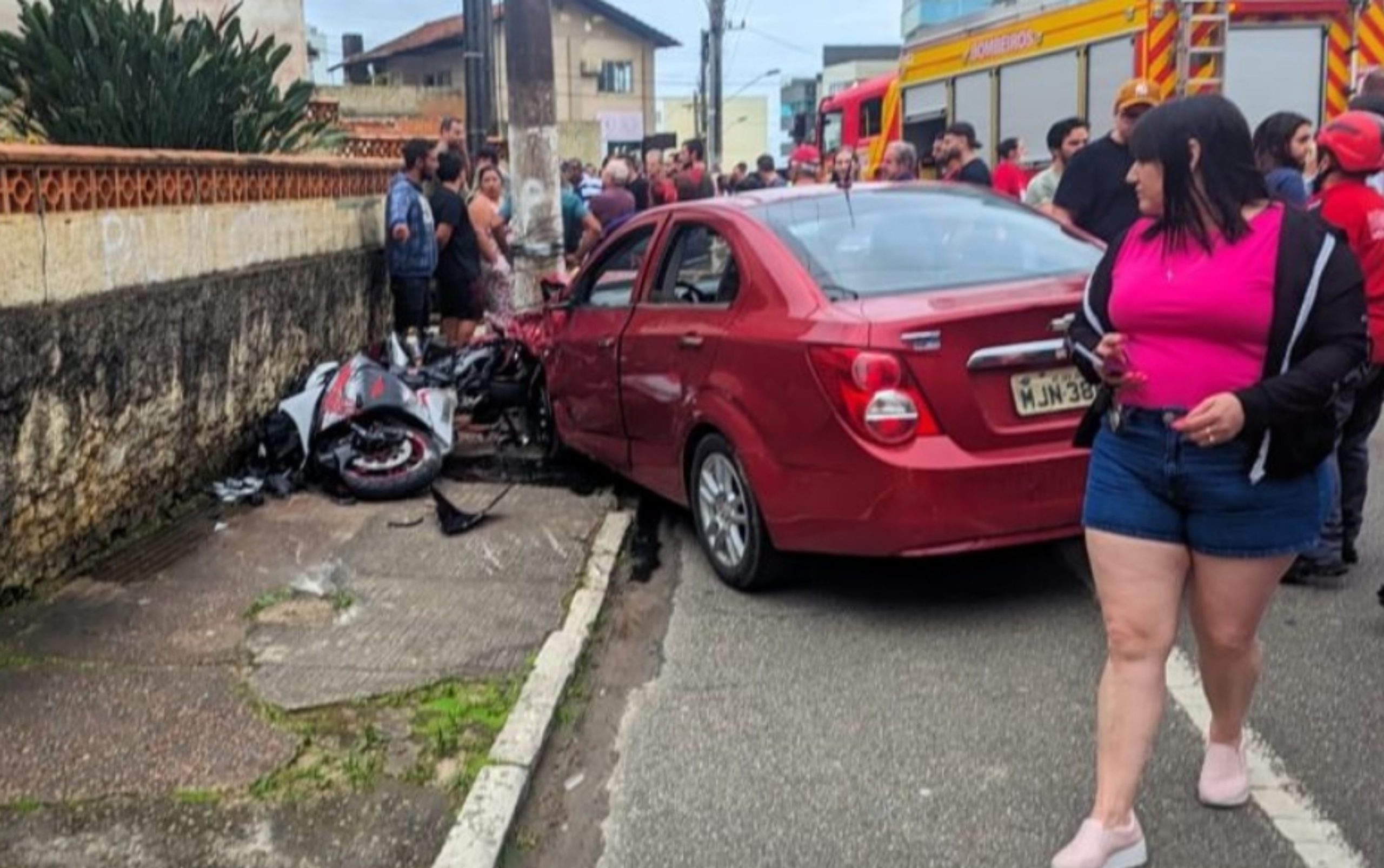 Imagens de câmeras de vídeo mostram o Chevrolet – a princípio um Sonic – invadindo a pista contrária e prensando o piloto da moto contra poste e muro. Vídeo vazado na internet mostra o condutor do veículo aparentemente alcoolizado no momento do acidente, por volta das 17h.