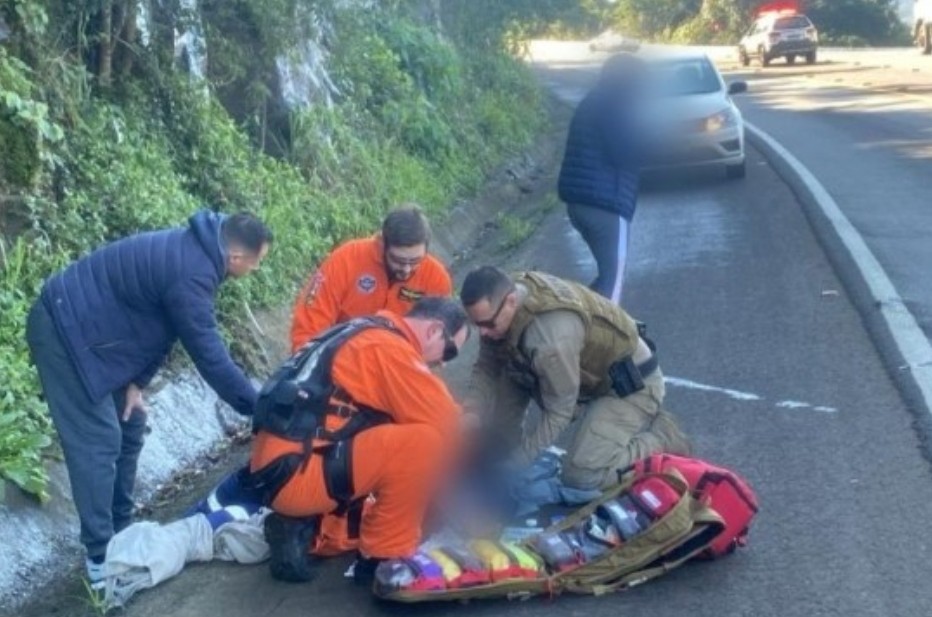 Um motorista ficou gravemente ferido após pular de um caminhão em movimento na SC-480, no Distrito de Goio-Ên, em Chapecó, no Oeste de Santa Catarina.