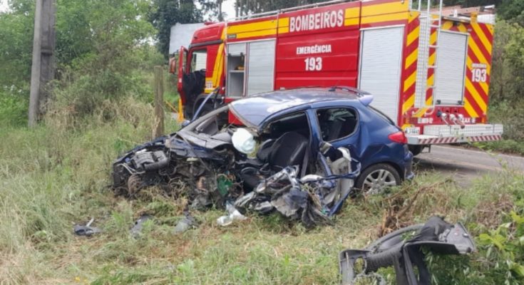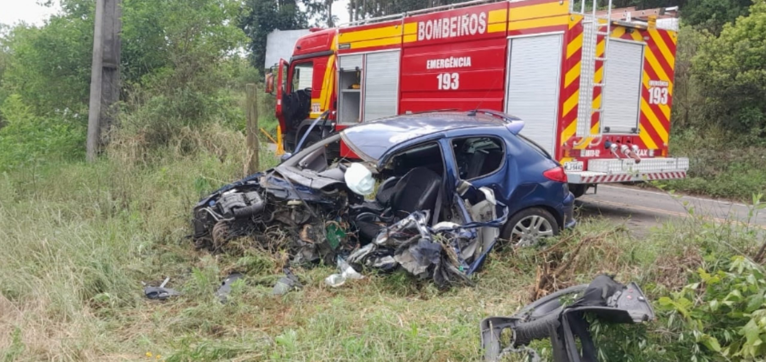 Segundo o Corpo de Bombeiros, a vítima de 20 anos ocupava um Peugeot, que colidiu frontalmente contra um caminhão caçamba, com placas de Chapecó.