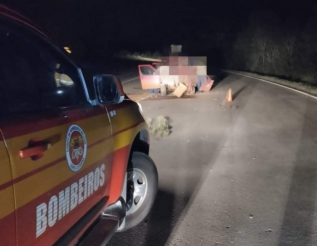 O automóvel era conduzido por um homem de 45 anos que estava no interior do veículo acidentado, politraumatizado, com ausência total dos sinais vitais.