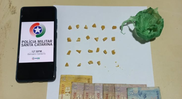 Na manhã desta terça-feira, 18, a Polícia Militar realizava rondas pela Rua Canelinha, no bairro dos Municípios quando flagrou duas pessoas em atitude suspeita, entregando algo uma à outra.