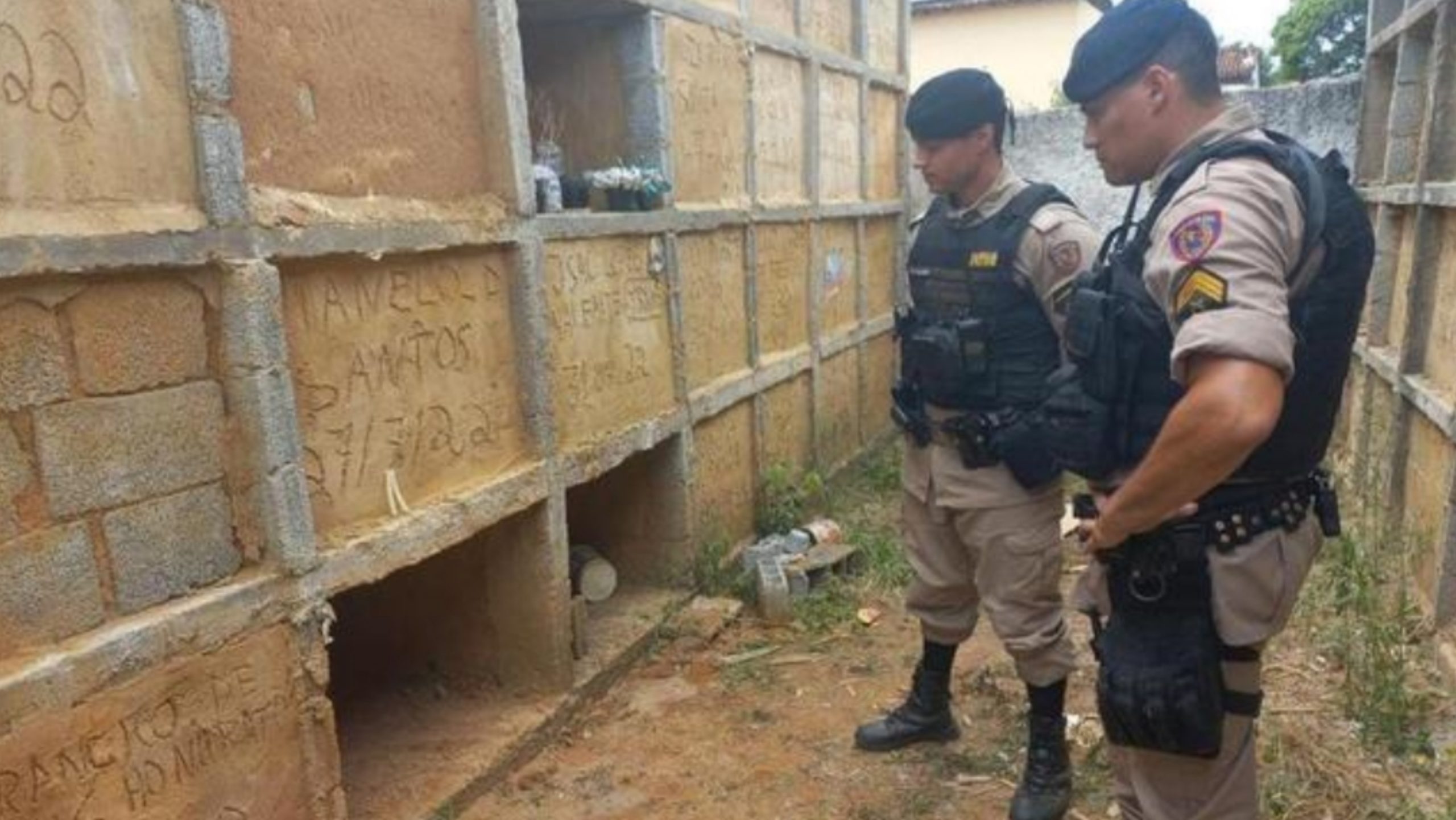 A PM (Polícia Militar) foi acionada por funcionários do cemitério, que viram a sepultura fechada com tijolo e cimento fresco e com manchas de sangue. Os militares chegaram ao local e ouviram o pedido de socorro da vítima.